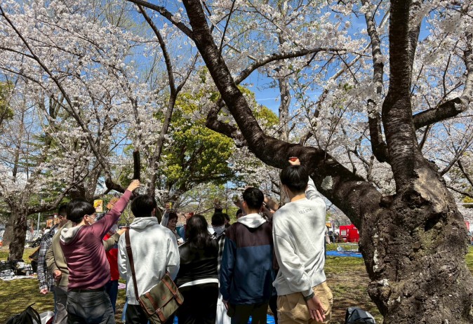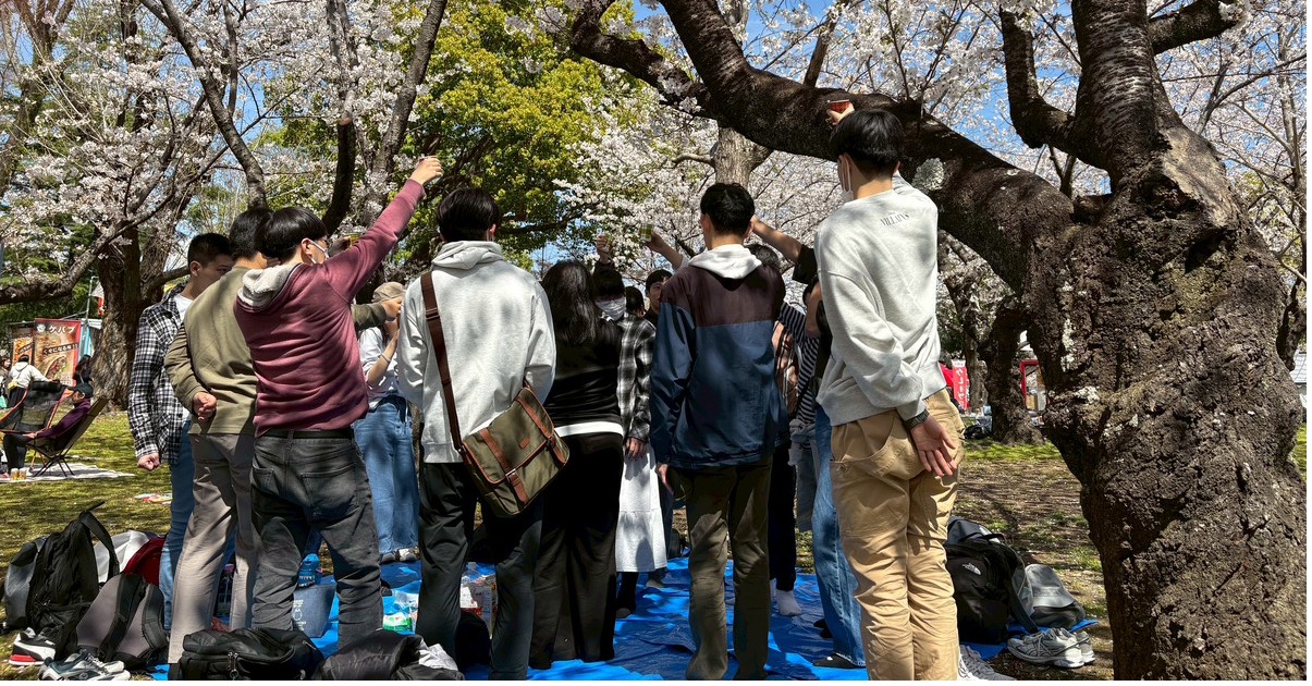 桜の下で乾杯!屋台で買い物をしたりお話をしたりと、